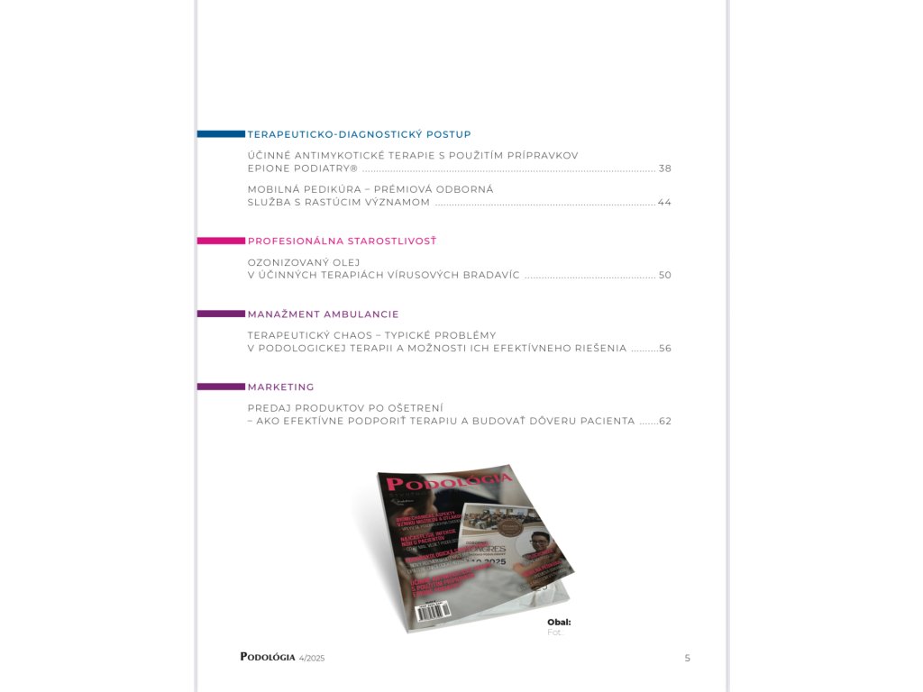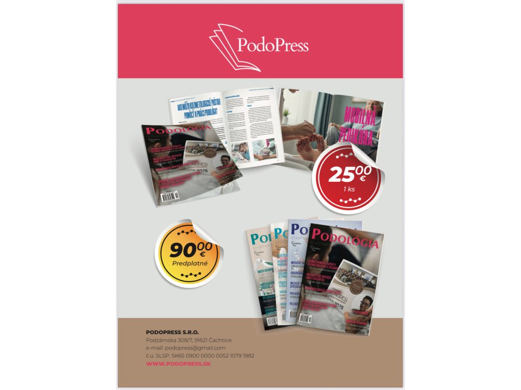 Objednávka vydanej série časopisov 2024: https://www.podopress.sk/casopis-podologia-vydana-seria-2024--5-cisel-/