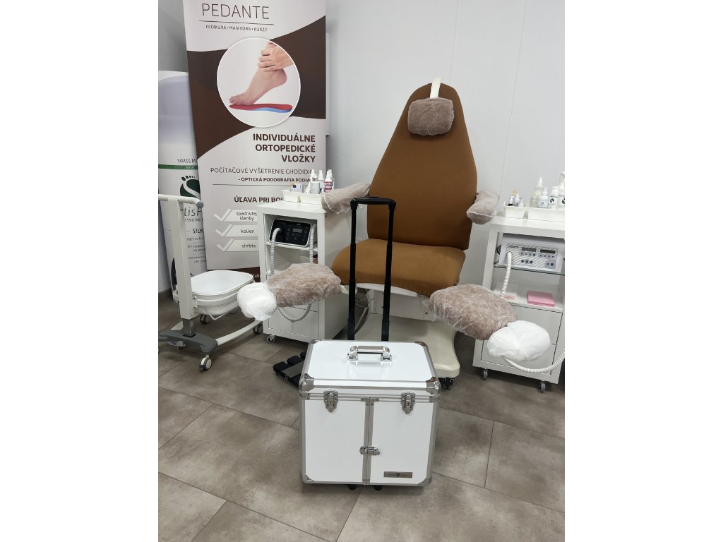 Profesionálny kufrík na mobilnú pedikúru – perleťová biela.
