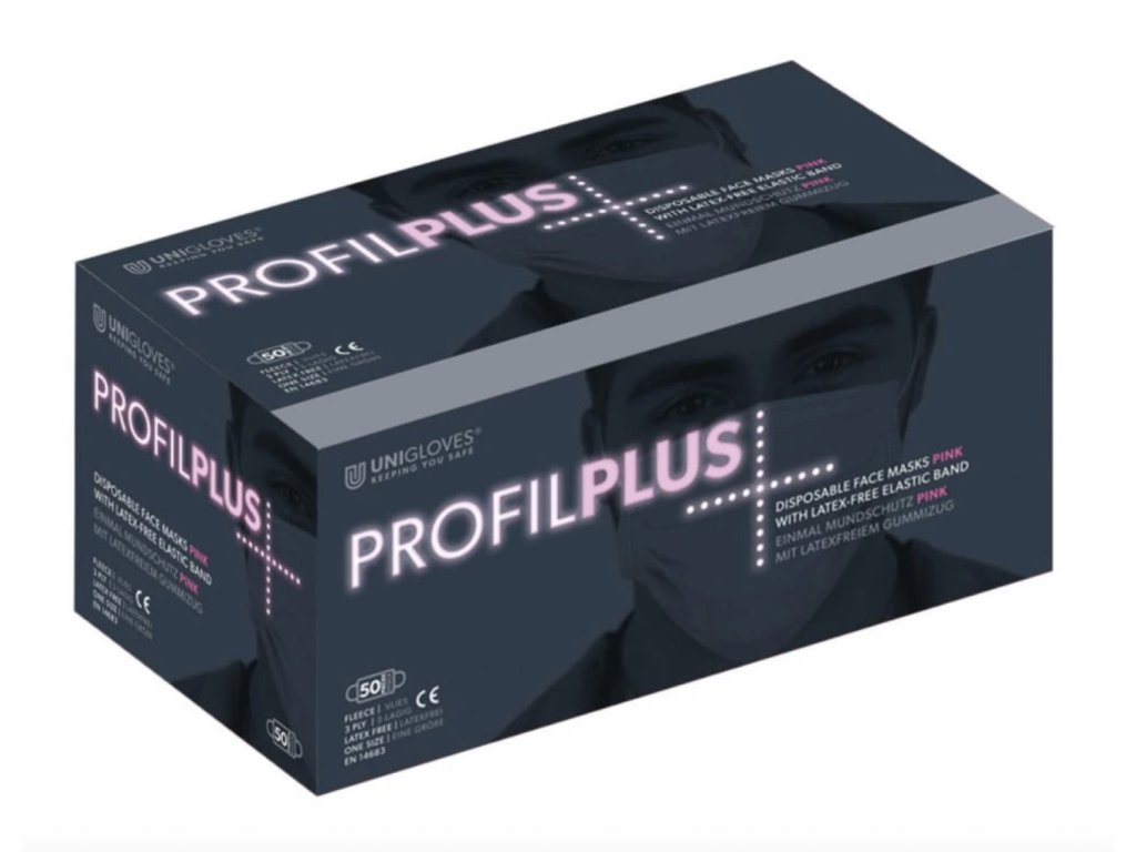Rúžové trojvrstvové rúška Profil Plus od značky UNIGLOVES poskytujú spoľahlivú ochranu dýchacích ciest pri každodennom profesionálnom používaní.