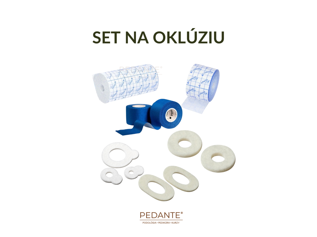 Balíček obsahuje základné pomôcky potrebné na vytvorenie oklúzie, ktorá sa používa na odľahčenie tlakových a bolestivých miest na chodidle.